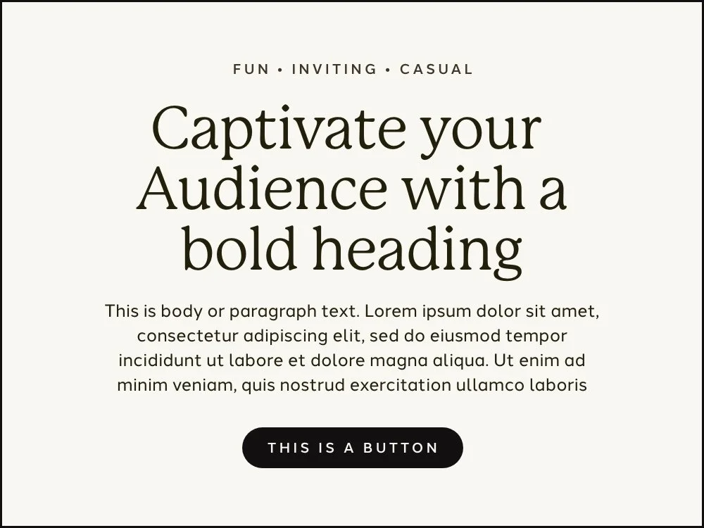 Your brand font pairing is the visual expression of your brand voiceβ whether it's authoritative, friendly, informative, or casual. An authoritative brand might opt for strong, bold fonts, while a friendly brand could choose a more relaxed, approachable font. Ensure that your typography complements and enhances your brand's voice, as it is a crucial component of your overall communication strategy.