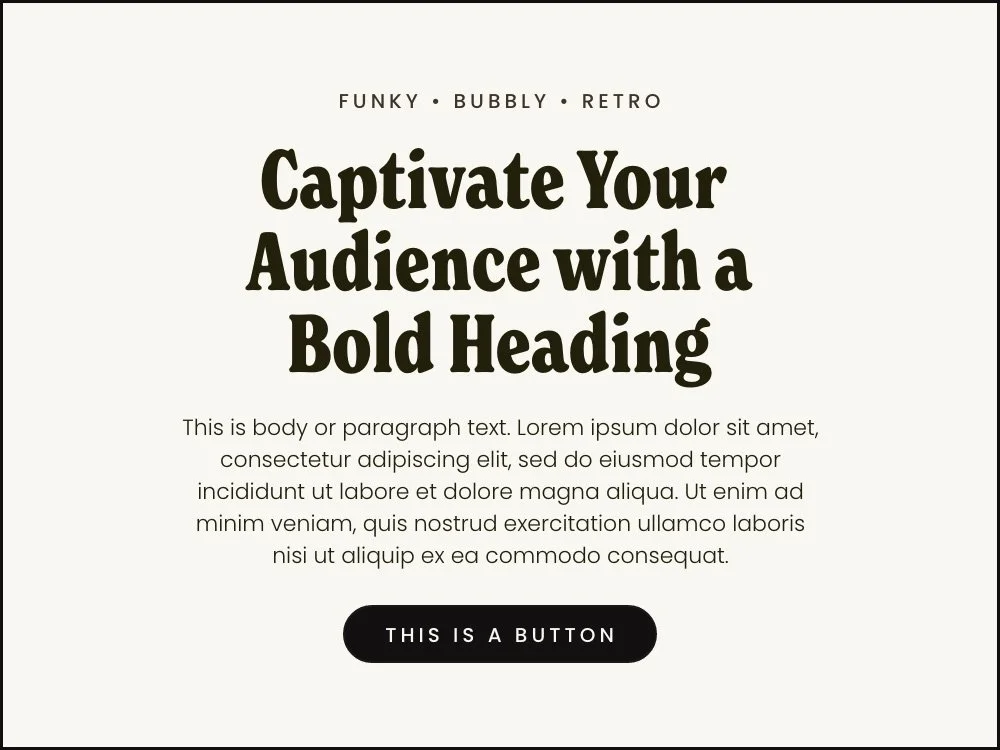 Pair New Spirit Condensed headline and Poppins paragraph text for a bubbly and retro font combination. Perfect for modern brands who are a little funky and fun.