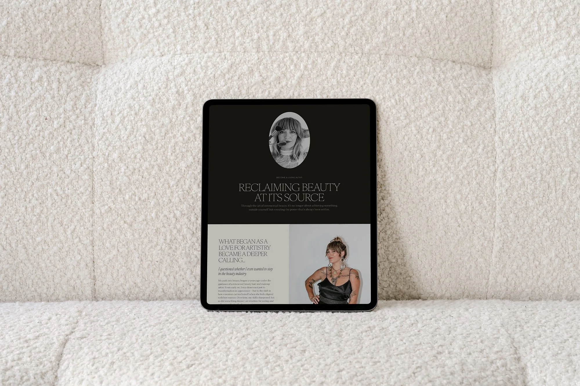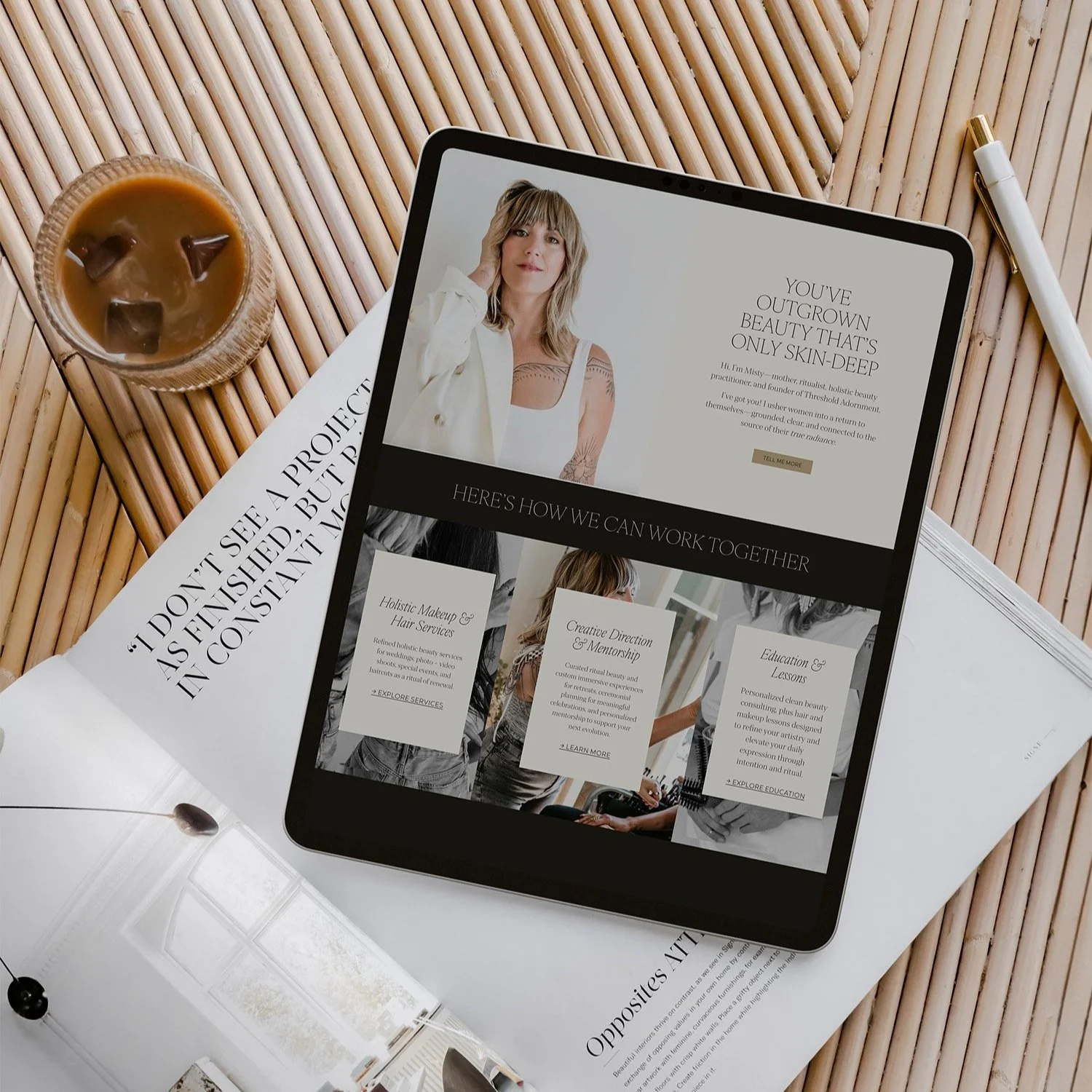 Misty’s new site is now a sacred online home that finally reflects the depth and beauty of her work. With elevated visuals, clear offerings, and a clean, intuitive structure, her site positions her as the go-to holistic beauty expert in her space. She now feels confident sharing her work online, with a site that supports both her presence and her growth. She’s ready to step into a new season of business with clarity, confidence, and a space that evolves alongside her.