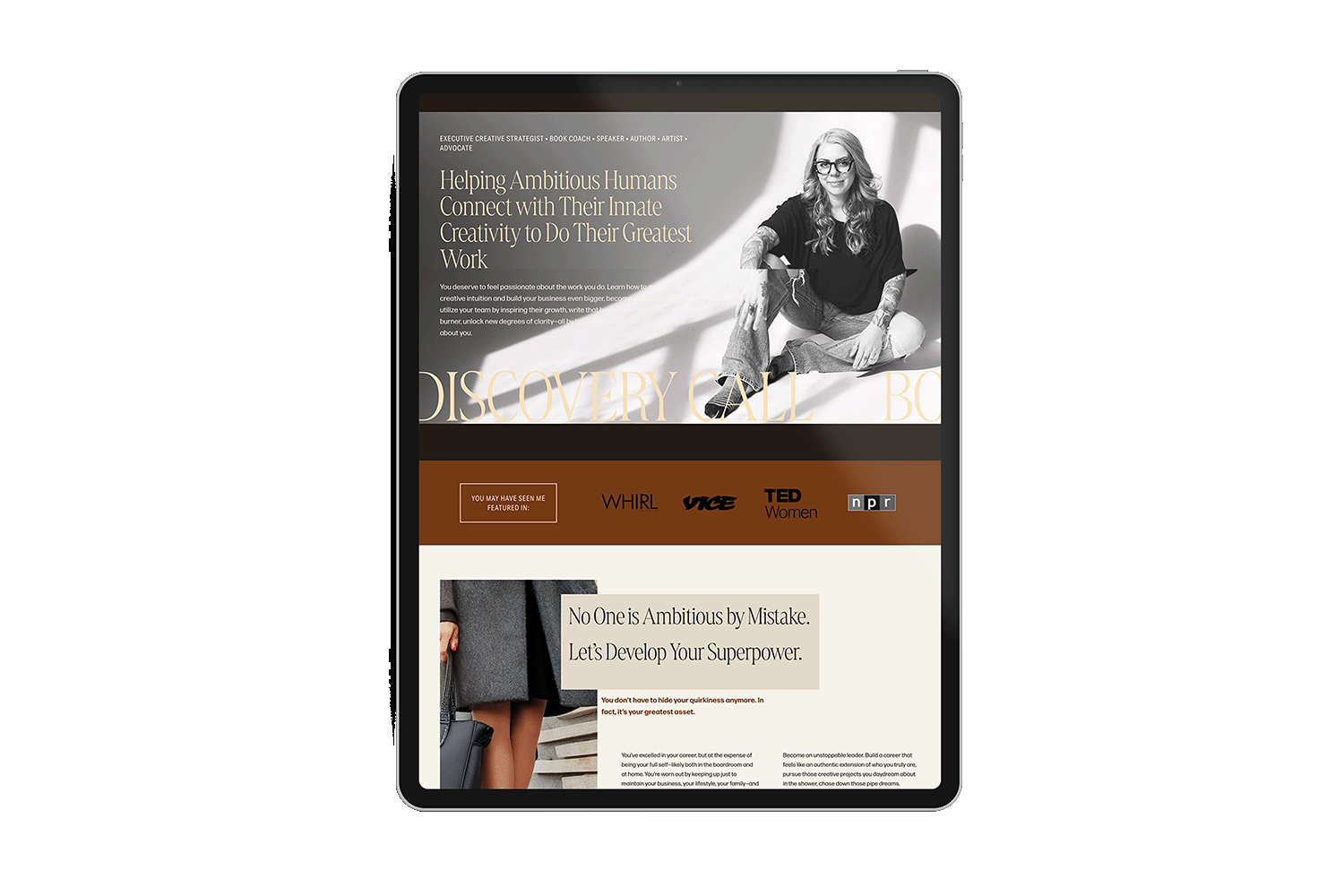 Custom web design is a high-touch, done-for-you experience where you work directly with Jamie as your website strategist. Together, we map out your offers, messaging, and user journey- then we’ll design and build a website tailored to your specific goals, clients, and business model. Every page, section, and call-to-action is intentionally planned so your site doesn’t just look beautiful, but actively supports conversions, clarity, and growth.